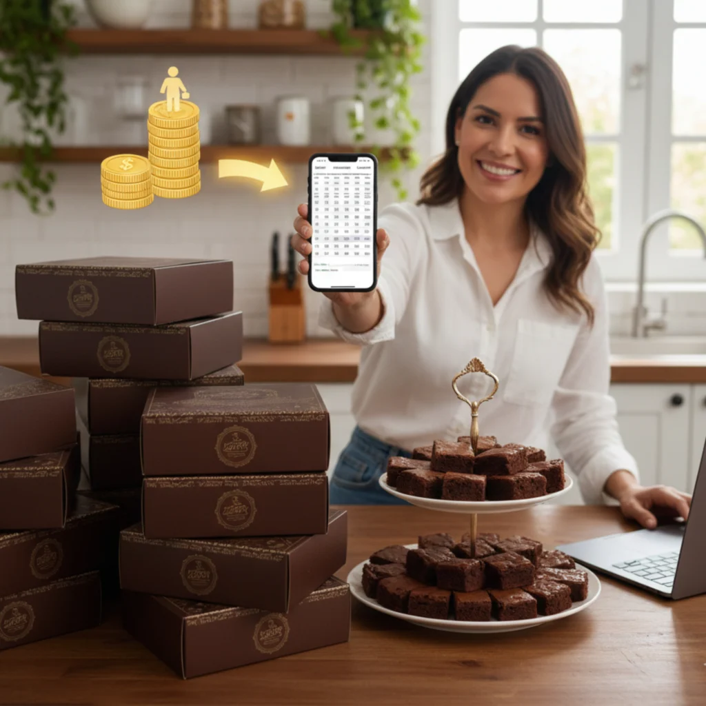 Tendrás números claros y la seguridad de que cada brownie vendido deja una ganancia real en tu bolsillo, sin miedos al cobrar.
